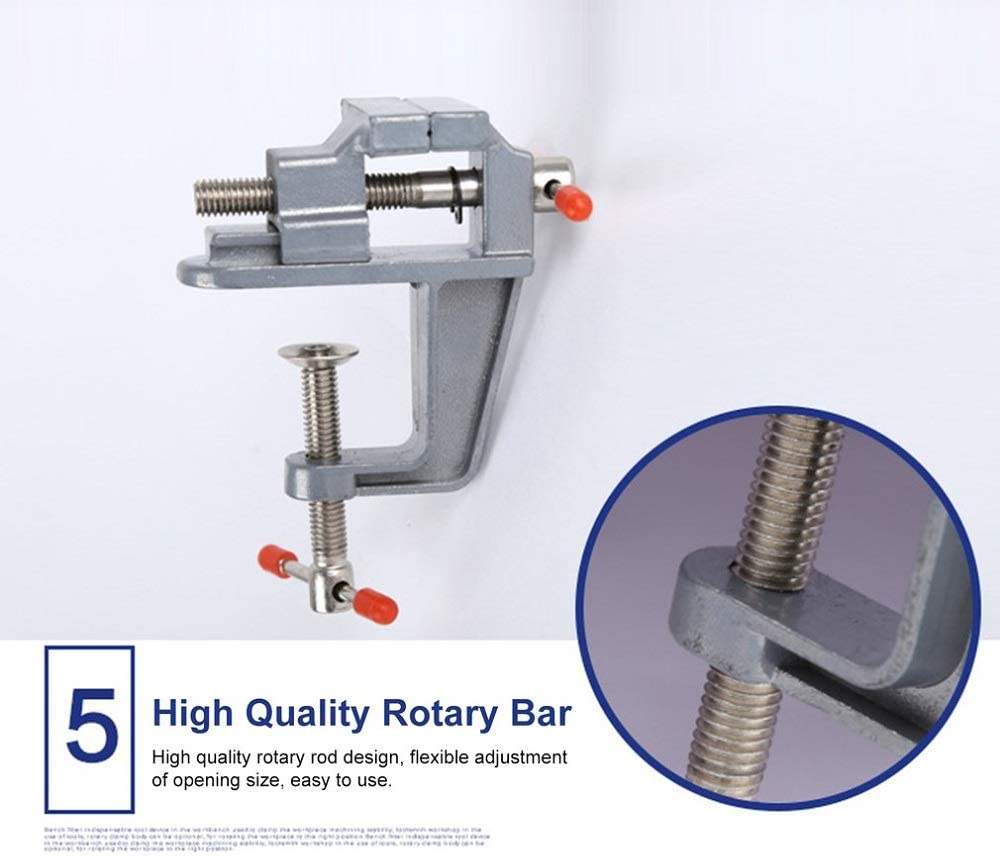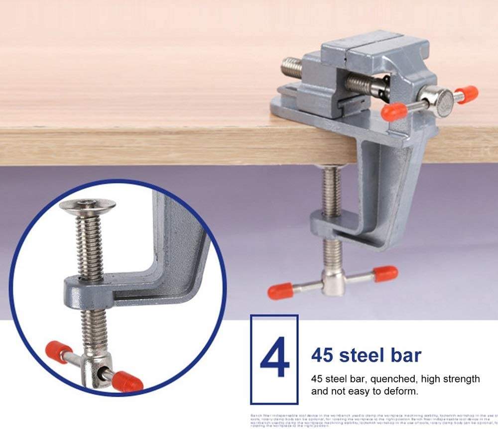 • EASY TO USE- This vise is incredibly easy to use for anyone. Simply turn the bar on top to open and close the clamp onto a table surface and then turn the screw to securely clamp any small objects to work on.