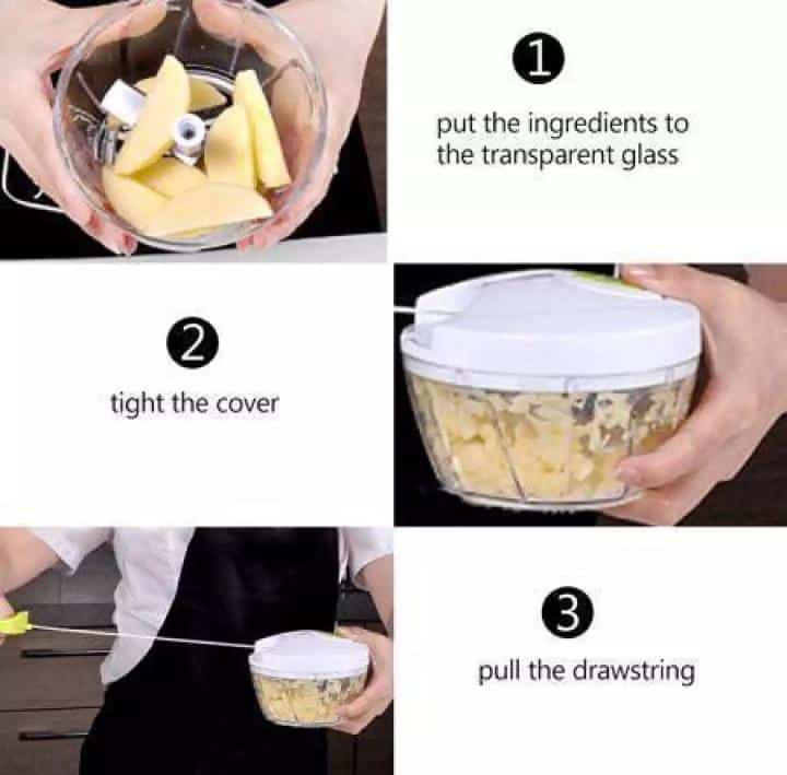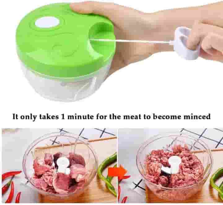- Efficiency: With powerful three sharp rotated blades, the high efficiency handheld food slicer just pull the ring a few times to chop or mix your ingredients.