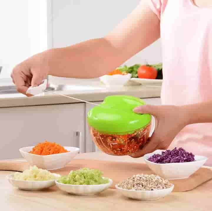 - Food Chopper with Multi-Purpose: The mini chopper can be used equally well as a vegetable chopper, salad chopper, onion chopper (no tears), garlic chopper, herb chopper or as a general-purpose manual food chopper.